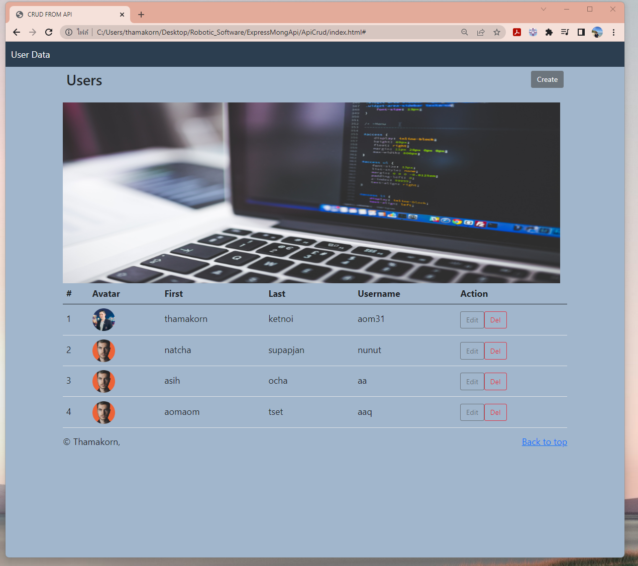 create front-end by figma,html,css /web-server by xampp /back-end by node.js express ejs /database by Mysql test by post-man