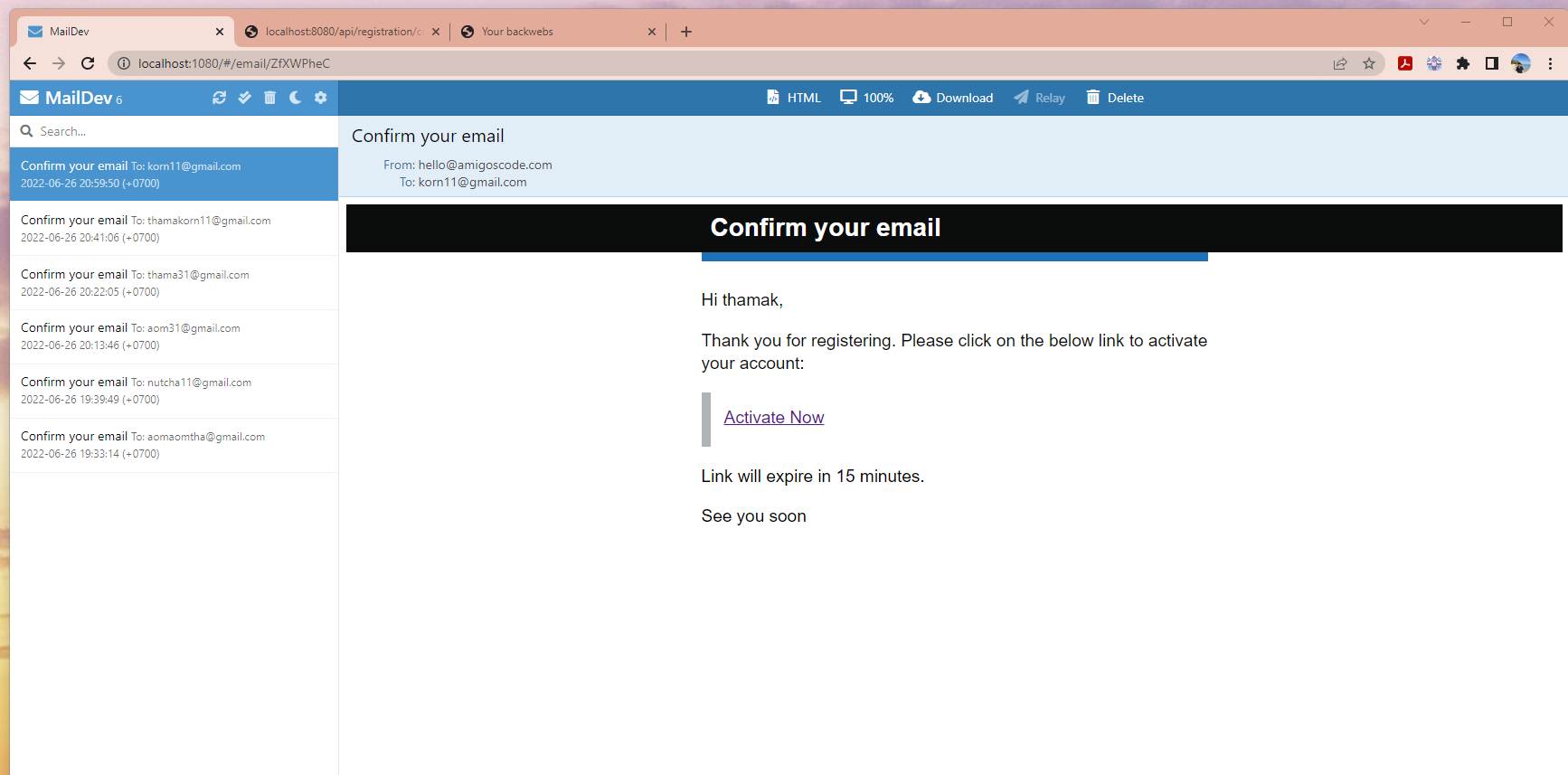 Create Login &Registration with spring security and email verify by maildev connect database with postgres on docker