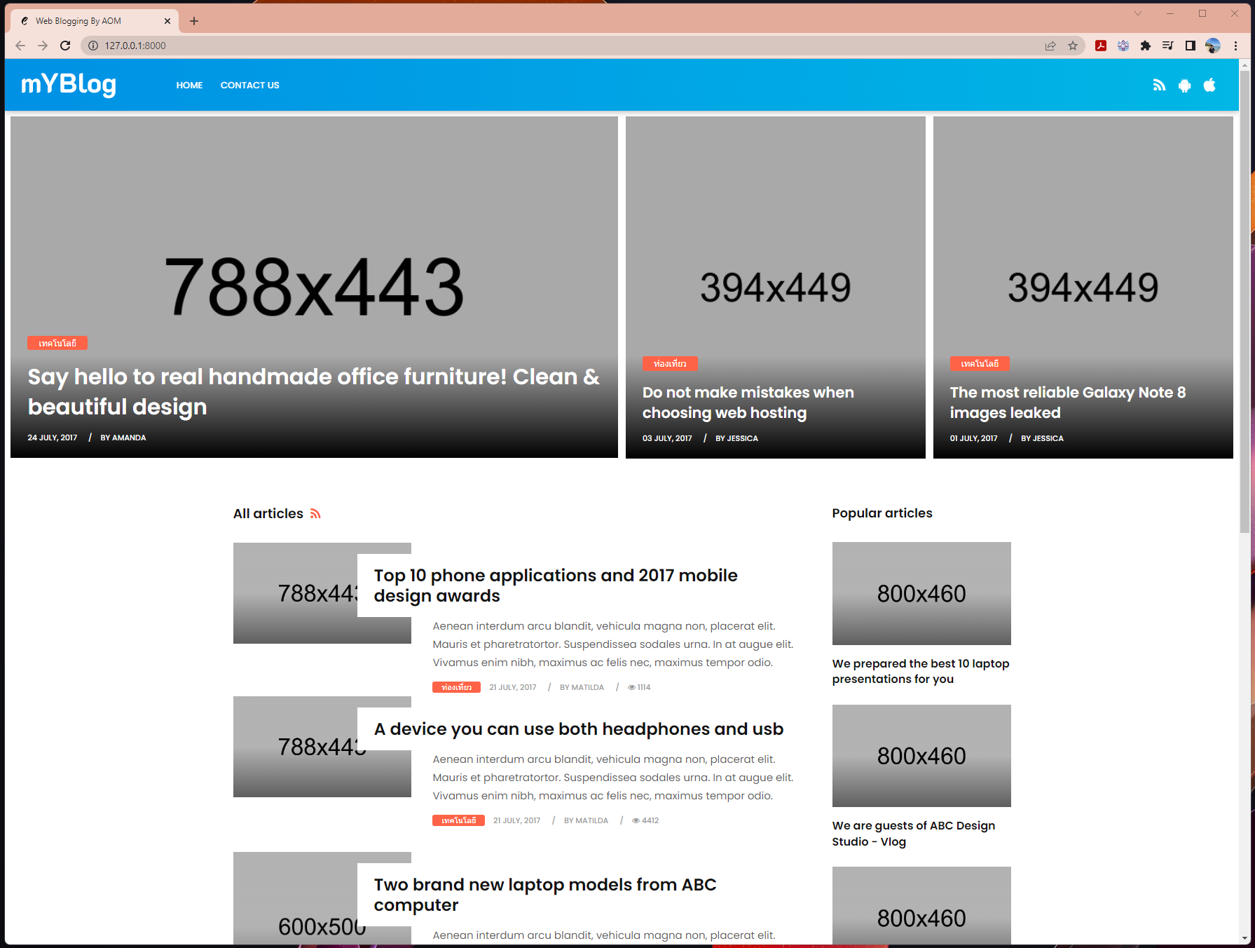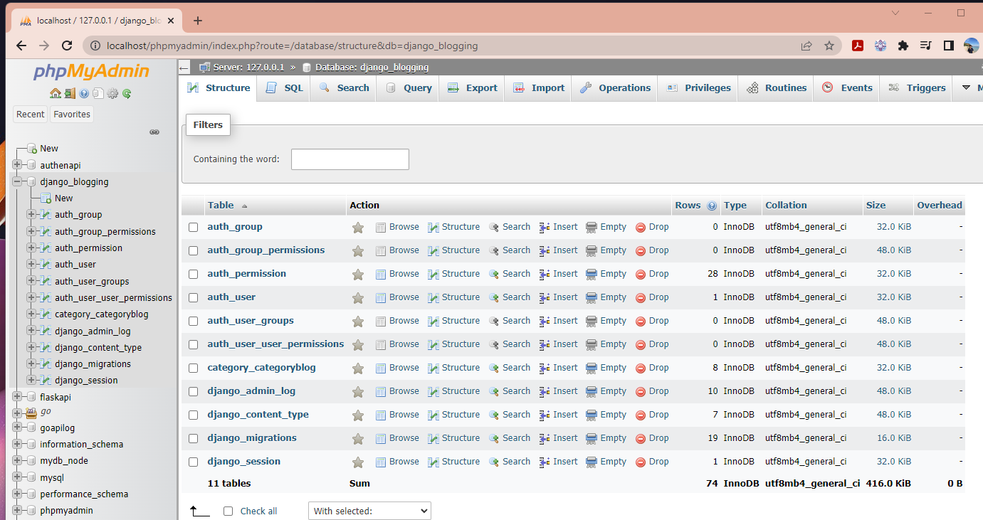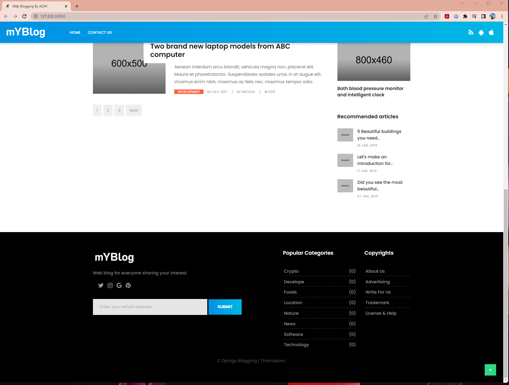 Create web bloging with django python xampp mysql html css bootstrap javascript User can login to writing everthing to blog abstract and picture Admin can view system and add/delete blogs,category